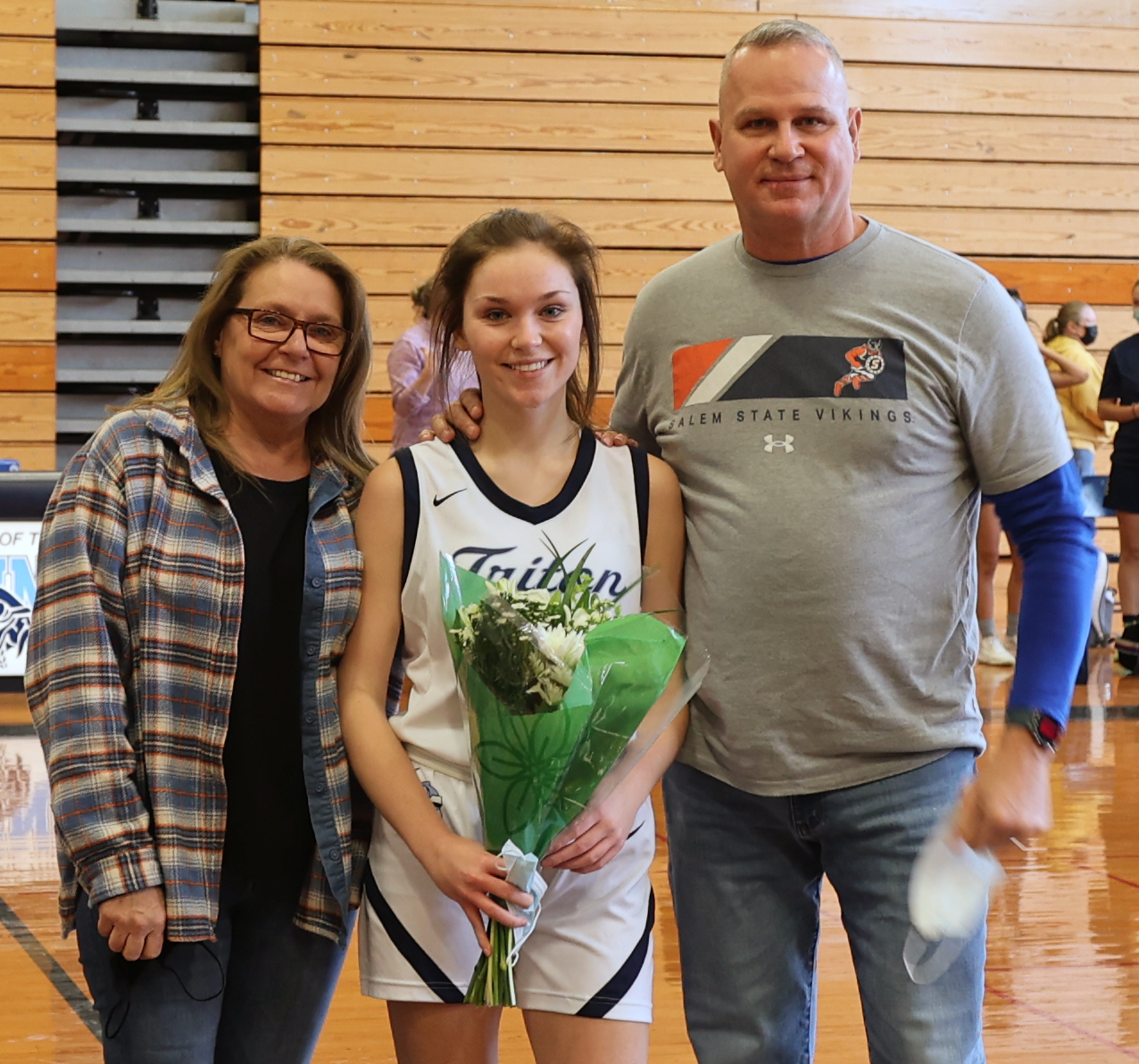 - Molly Kimball (with family) was one of the Triton players honored on Senior Day on January 9th.