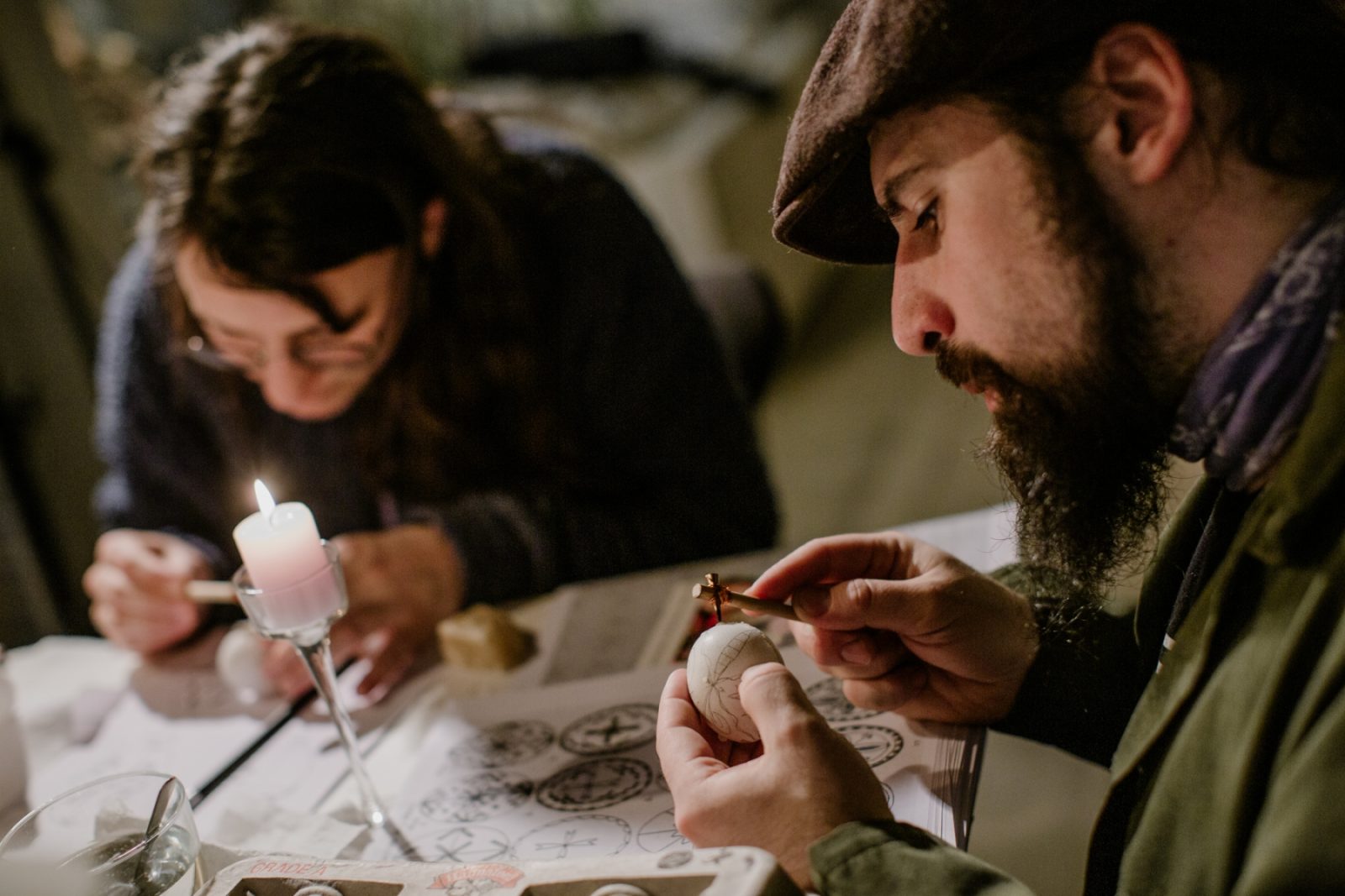 - Volunteers working on their pysanky for the project at the Round Lake Art House in Round Lake, NY, March 6, 2022