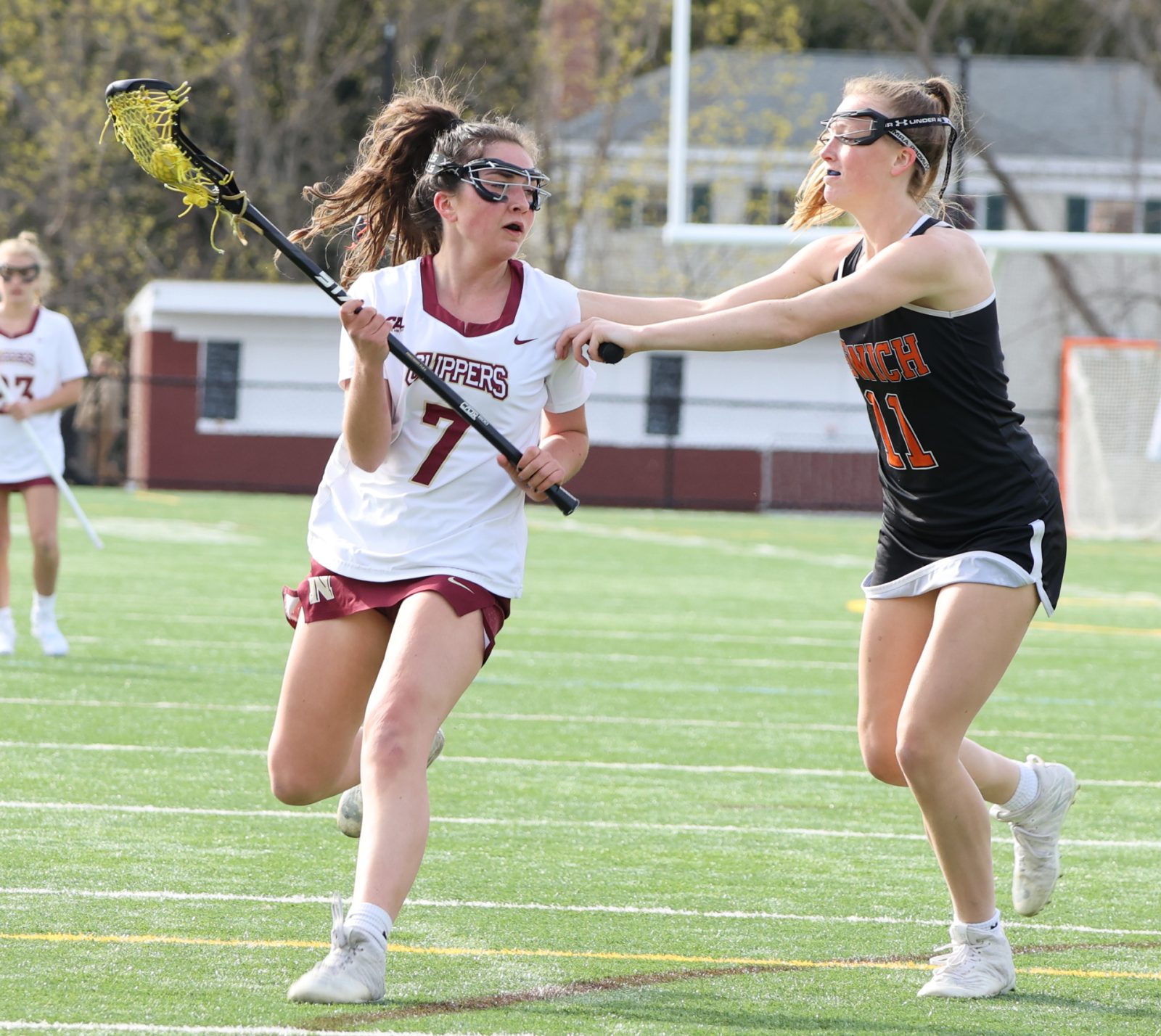 - Brela Pavao of Newburyport chases Julia Moseley of Ipswich during Monday’s girls lacrosse game at Newburyport.