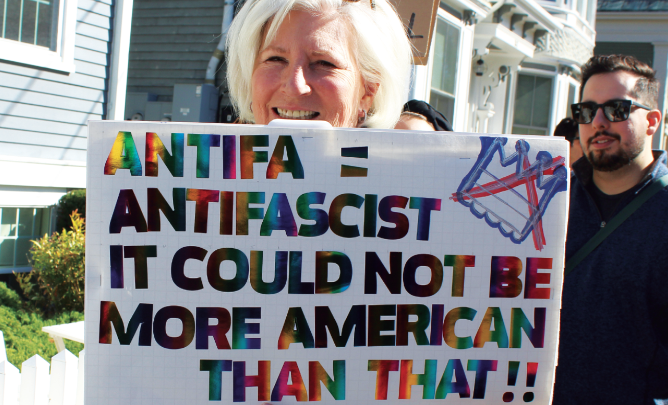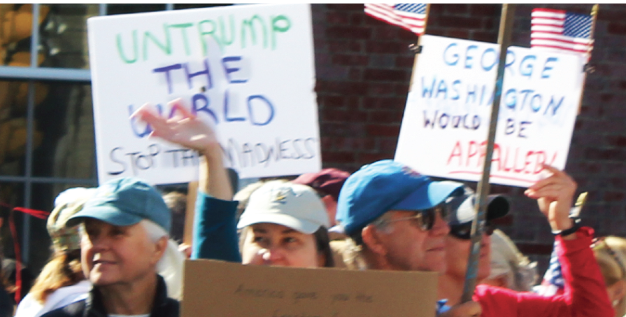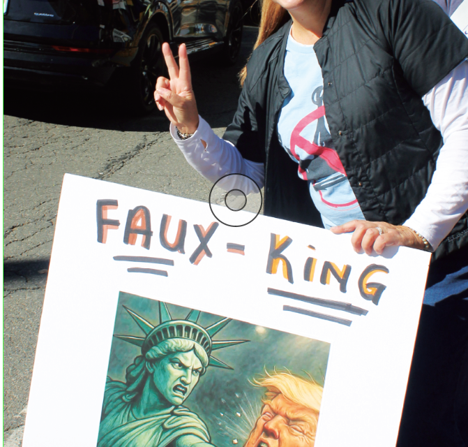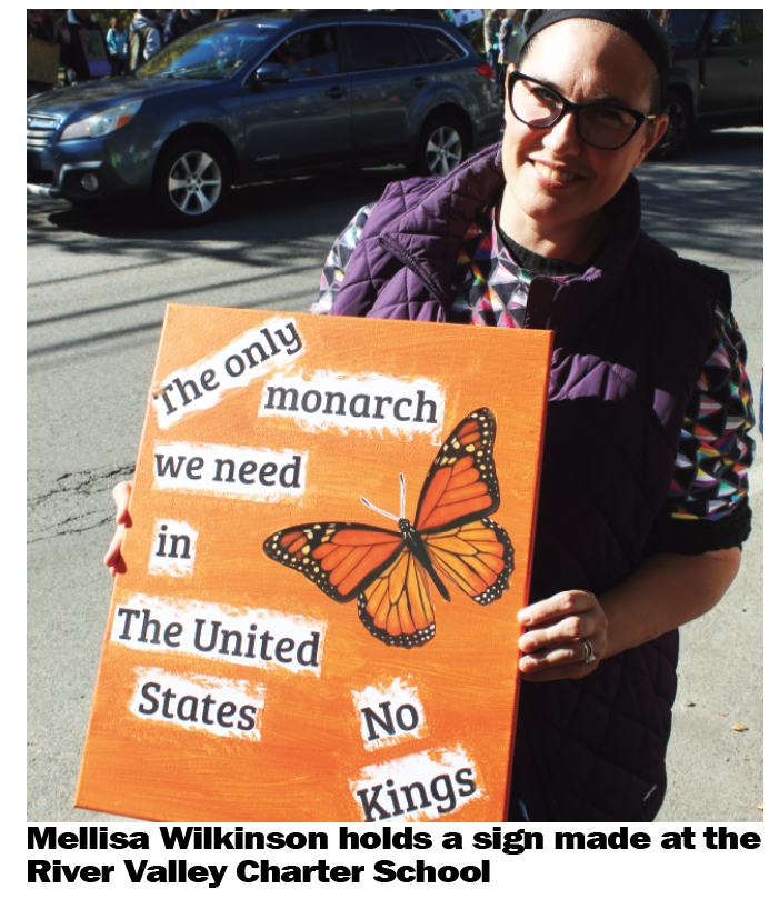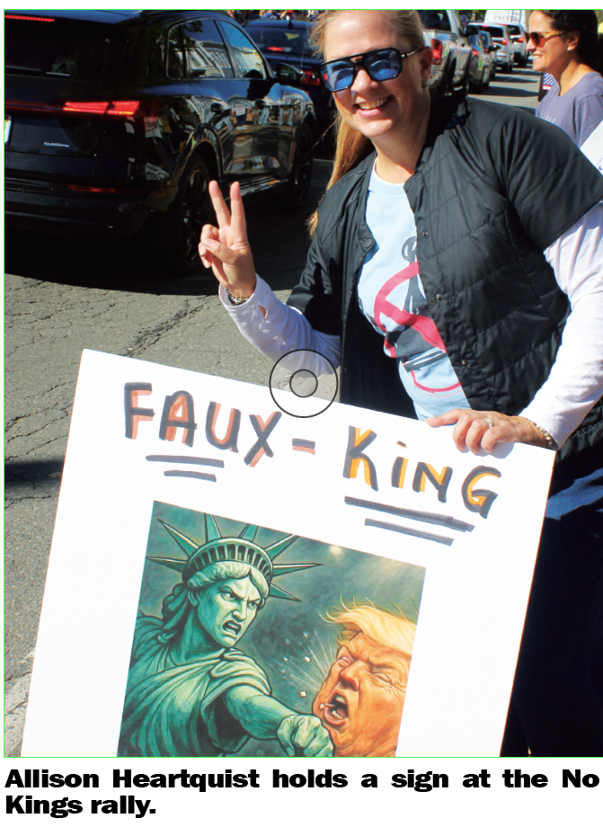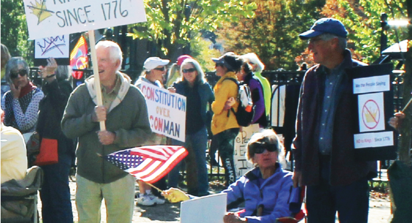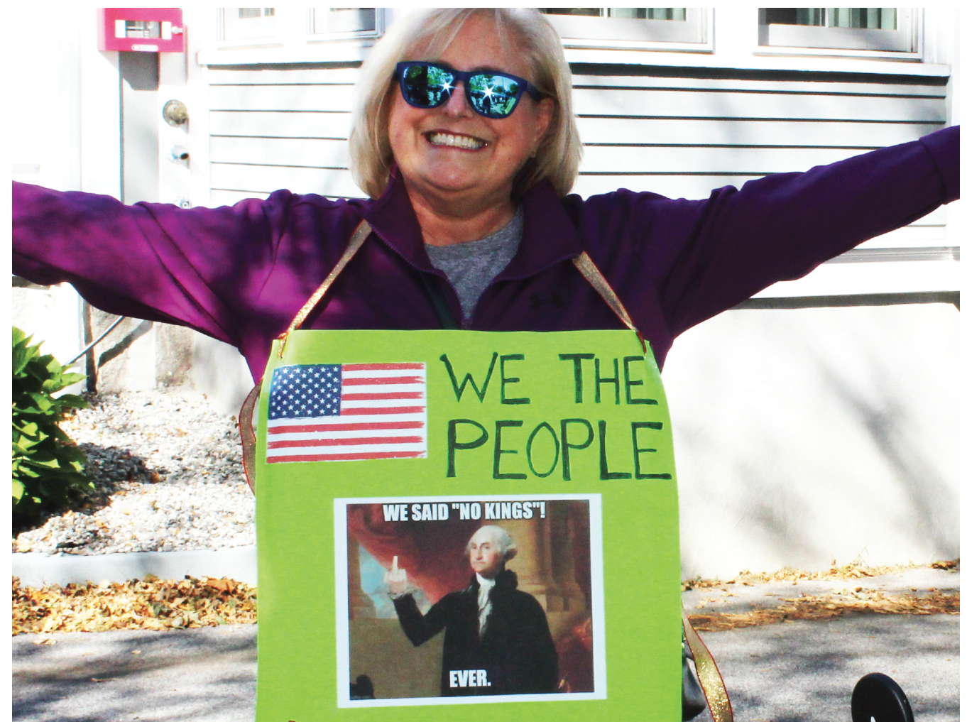 NEWBURYPORT – Thousands of North Shore residents came to the Bartlett Mall Saturday to participate in the No King national political rally. An estimated 3,000 people (?) lined both sides of High Street, holding signs protesting the current administration’s action and the President, while a solid stream of cars rolled by honking and waving. (Photos by Stewart Lytle)