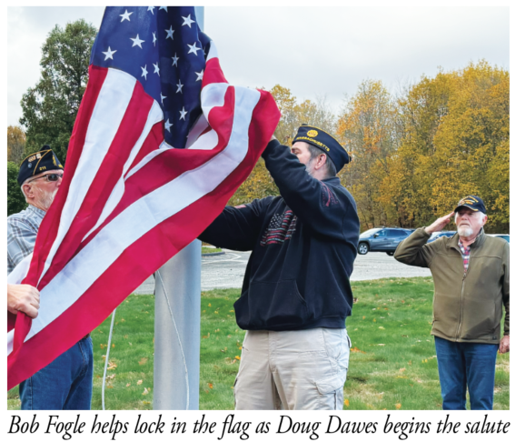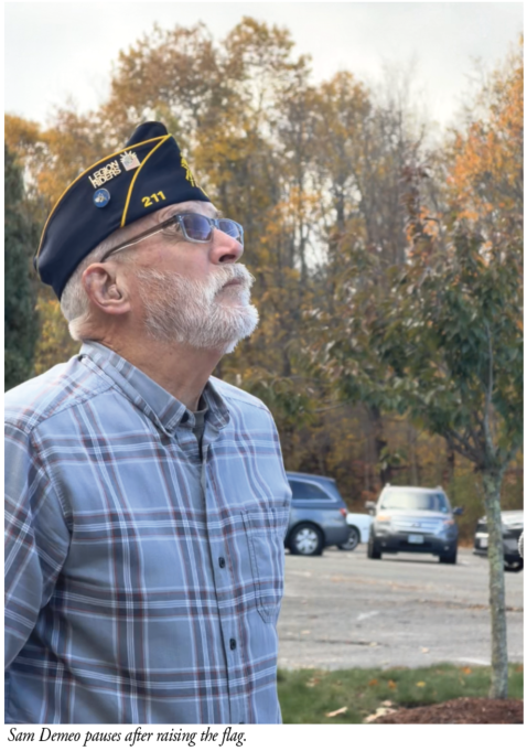 The new American flag was raised by Sam Demeo who has performed a lot of events in Georgetown over the years. He took great care in slowing raising the flag while members present saluted. He noted: “we try to follow procedure when we do this, there’s a protocol for handling the flag and I hope we always do it right.”