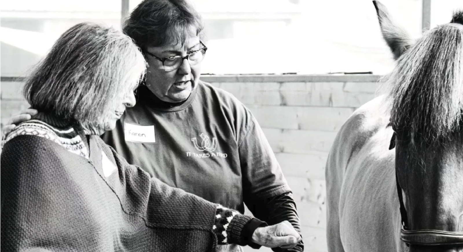 friendly equine-assisted program that blends dementia care expertise, Equine-Assisted Learning (EAL), and a deeply person-centered approach. Through structured, meaningful activities with horses—paired with a robust, research-informed curriculum—Karen intentionally supports both the person living with dementia and the care partner, creating space for connection, confidence, and shared purpose.