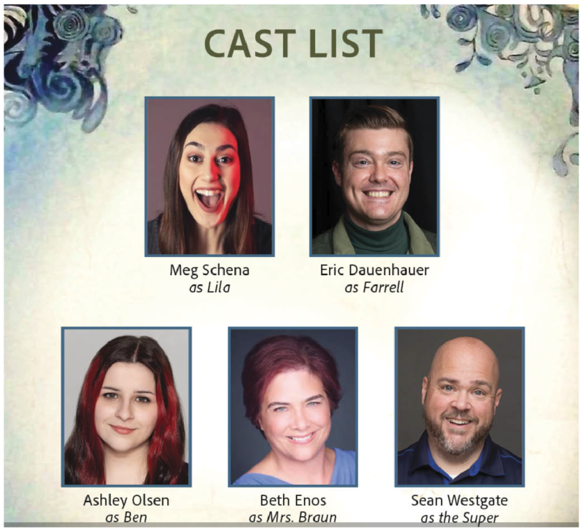 Lila is played by Megan Schena; Farrell by Eric Dauenhauer; Ben by Ashley Olsen; Mrs. Braun by Beth Enos and The Superintendent by Sean Westgate.