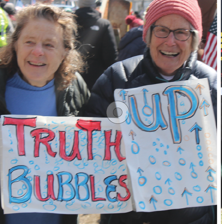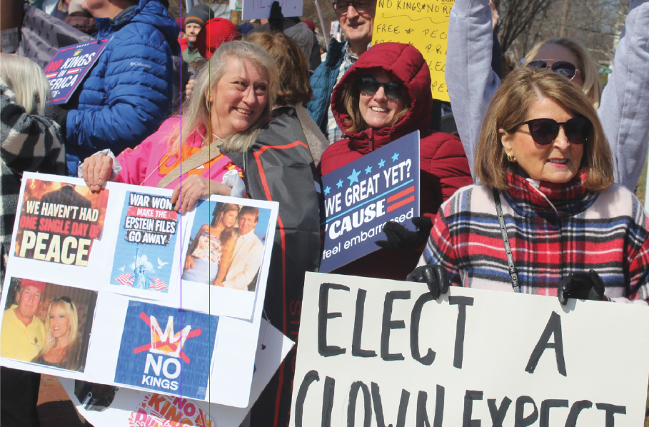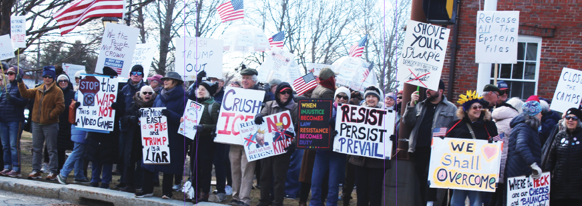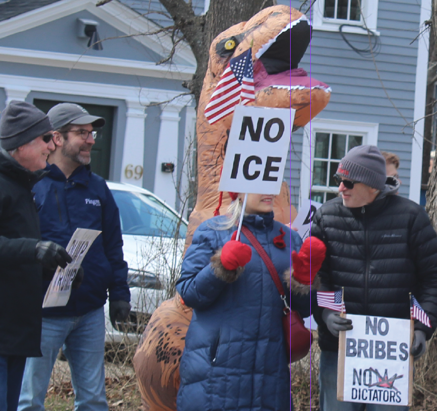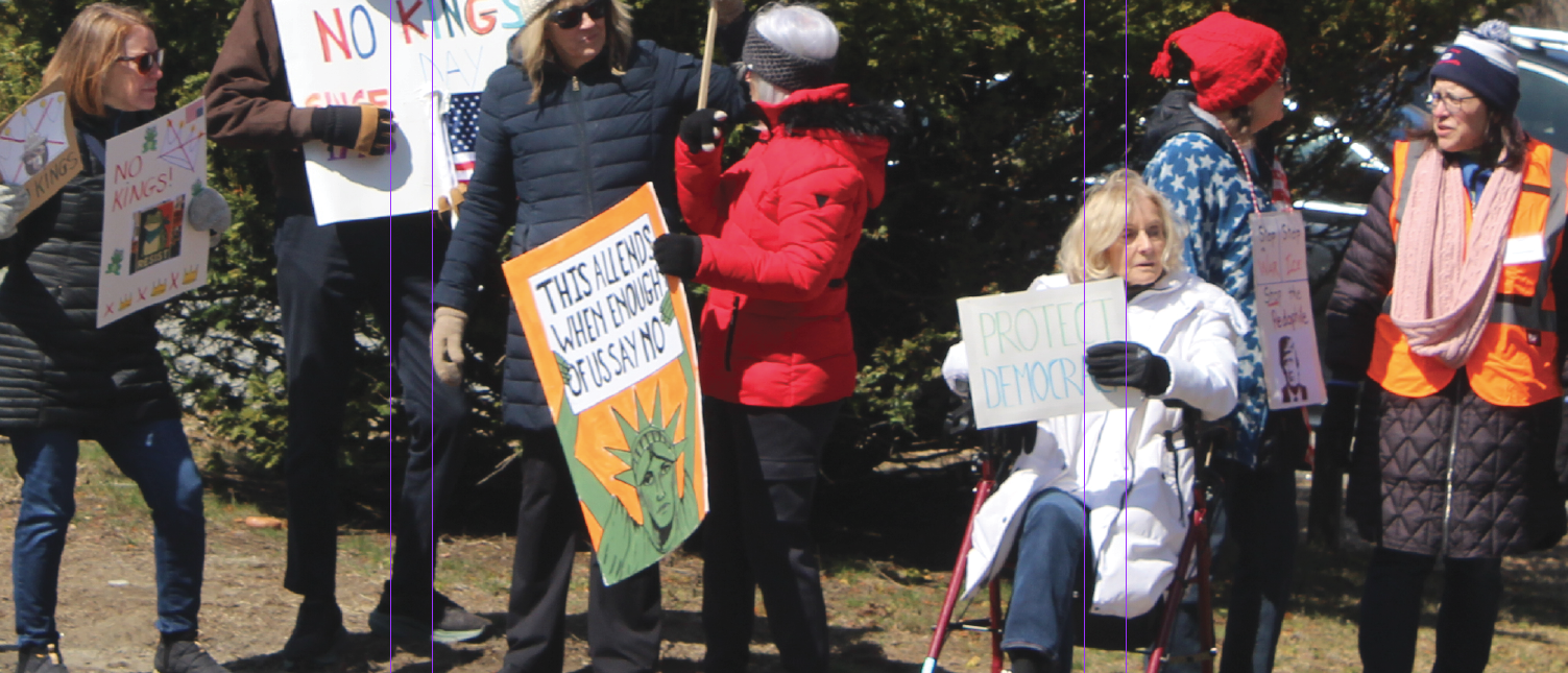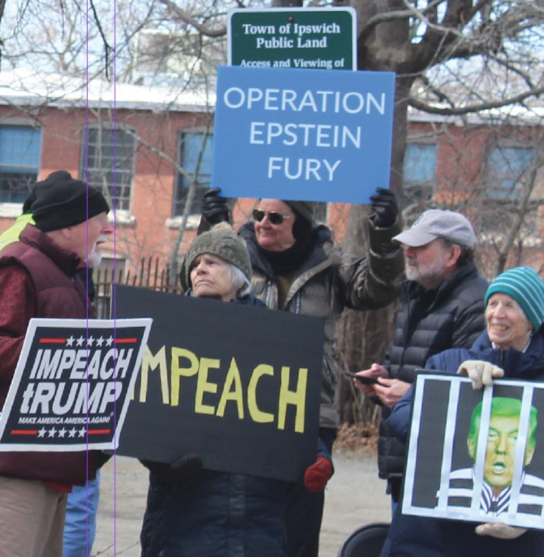 REGIONAL – Hundreds of residents in North Shore towns gathered Saturday in Newburyport, Ipswich , on the I-95 bridge in Georgetown and Boxford to express their opposition to the Trump Administration and President Donald Trump himself. The protesters carrying signs that expressed angry and humorous comments, lined major streets. They were peaceful and in general joyful as music played, including live drumming in Ipswich and recorded protest songs from the Vietnam War era in Newburyport.